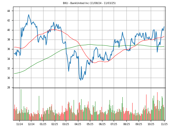 Over the last 50 trading days, when compared to the S&P 500, the stock has performed in line with the market. BKU's chart formation suggests an upward trend is beginning. stock is in the early stages of a rising trend. A close above $40.1 is a number to watch to confirm a trend reversal.Momentum as measured by the 14-day RSI is positive but showing signs of slowing. Over the last 50 trading sessions, there has been more volume on up days than on down days, indicating that BKU is under accumulation, which is a bullish condition. The stock is trading above a rising 50-day moving average which confirms the improving technical condition. BKU is above its rising 200-day moving average which is pointed up adding to the stocks improving technical condition.